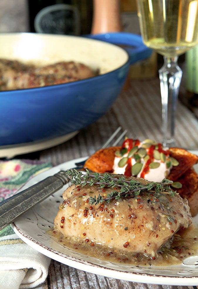 White Wine Braised Chicken with Mustard and Thyme