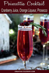 This Cranberry Poinsettia Champagne Cocktail is similar to a Mimosa but uses Cranberry Juice and Orange Liqueur instead of orange juice. Altogether a beautiful and delicious libation for the holidays!
