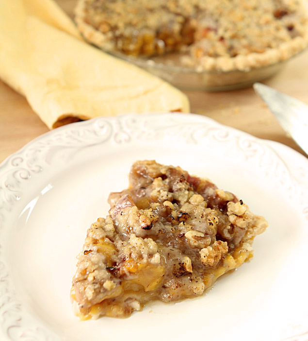 Fresh Peach Pie with a Brown Sugar and Walnut Crumble