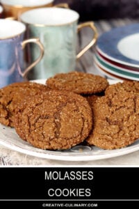 Molasses Cookies are best if they aren’t baked too long and after being baked if they aren’t allowed to dry out. They should be chewy on the inside and crisp on the outside so watch your time carefully!