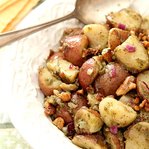 Pesto Potato Salad with Parmesan Toasted Walnuts