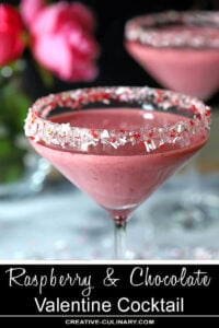 Raspberry and Chocolate Cocktail with vodka, half and half, raspberry syrup, and white chocolate liqueur is the perfect after dinner Valentine’s Day cocktail.