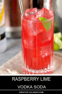 My favorite cocktail when I’m not in the mood for fussing is a Vodka Soda, combining a great vodka with sparkling water. I’ve elevated it just a notch with this Raspberry Lime Vodka Soda but it’s still a light and delightful cocktail.
