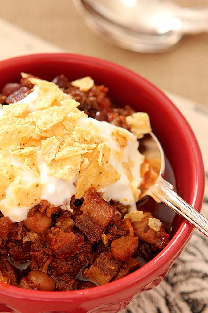 Whether you’re hosting a get together or just want to make something special for your family, this Smoky Beef, Bacon and Bourbon Chili will win them over!